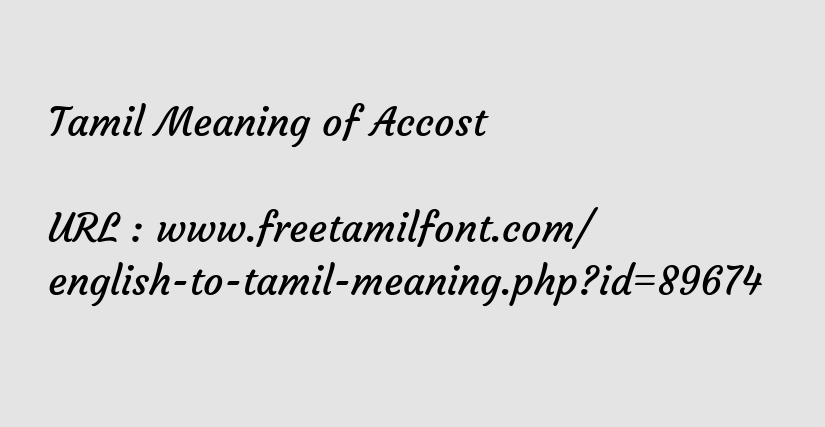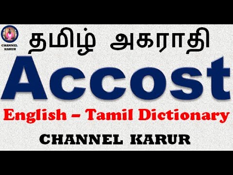 To go up to or stop and speak to someone in a. To approach and speak to someone in an often challenging or aggressive way He was accosted by a stranger on the street. He accosted me in the street me abordó en la calle se dirigió a mí en la calle he accosted me for a light se acercó a mí para pedir fuego. To write and recognize the Tamil characters Tamil Virtual Academy.